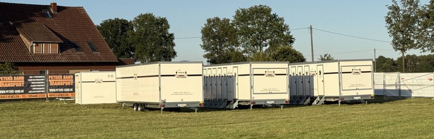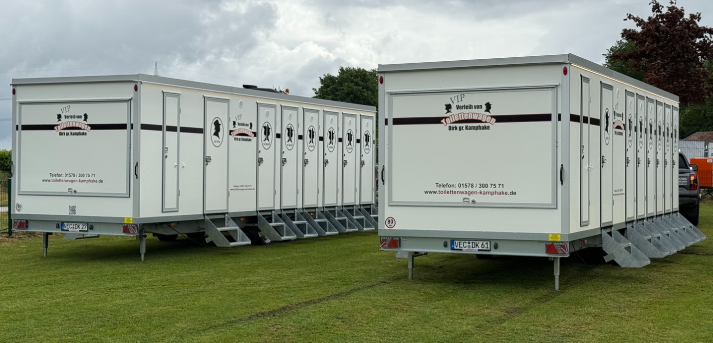 Sie benötigen noch mehr Toiletten für Ihre Gäste? Gerne stellen wir Ihnen eine individuelle Kombination unserer Toilettenwagen persönlich zusammen und beraten Sie hinsichtlich des benötigten Platzbedarfs. Zögern Sie nicht uns zu kontaktieren.